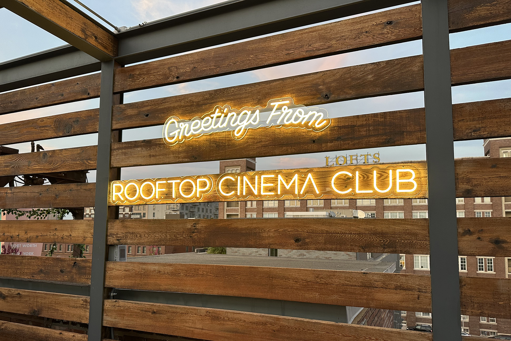 Pink dusk views of the Kansas horizon and a cityscape bathed in sunset only added to the silver screen experience for midweek movie-goers trying out the newly opened Rooftop Cinema Club in Kansas City’s Crossroads Arts District.