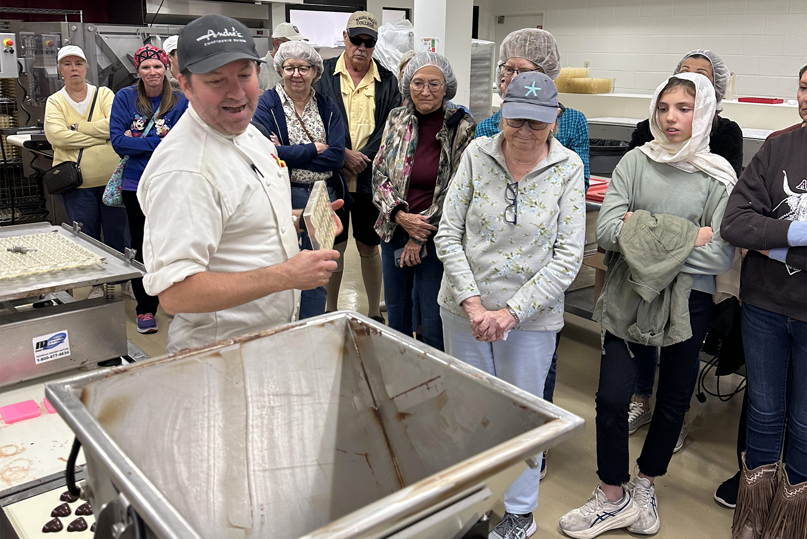 René Bollier, president and executive chef, and the third-generation to helm André’s Confiserie Suisse, gives a tour of the brand’s flagship South Plaza location; photo by Joyce Smith