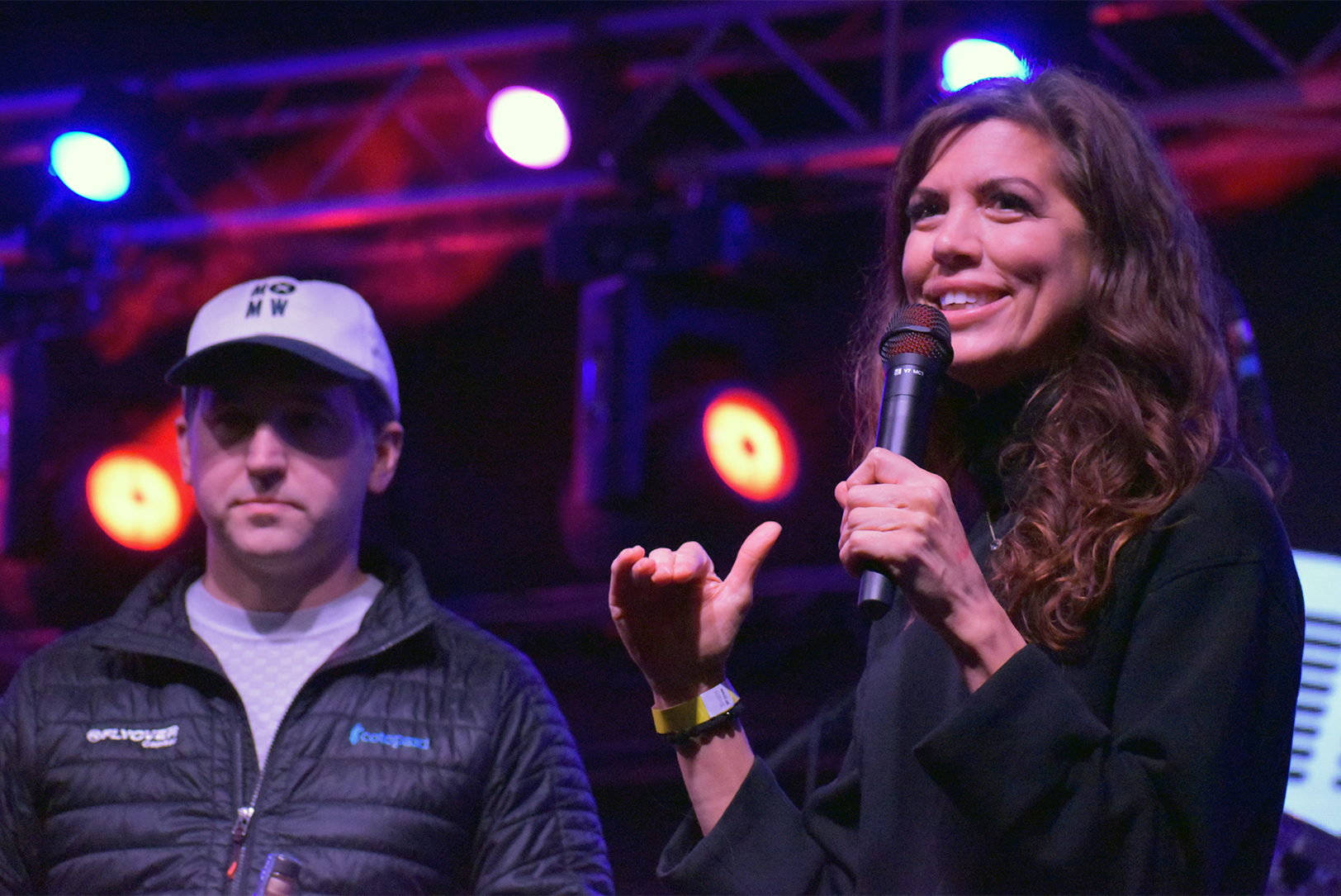 Melissa Vincent, Pipeline Entrepreneurs, right, speaks on stage alongside Dan Kerry, Flyover Capital, during the Starty Party at Knuckleheads; photo by Taylor Wilmore, Startland News