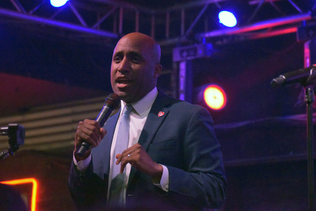 Mayor Quinton Lucas speaks at Starty Party. “If you love Kansas City, if you love making money, if you love supporting entrepreneurs in business, you’re in the right place tonight. More than anything, make sure you get to know each other, get the chance to connect, and listen to some outstanding music,” Lucas said; photo by Taylor Wilmore, Startland News