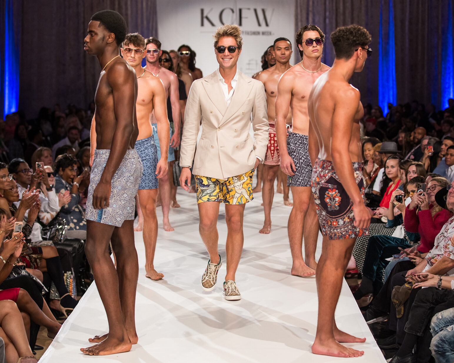 Tristan Davis walks the runway during the Atlas Swimwear show during Kansas City Fashion Week; photo courtesy of Tristan Davis