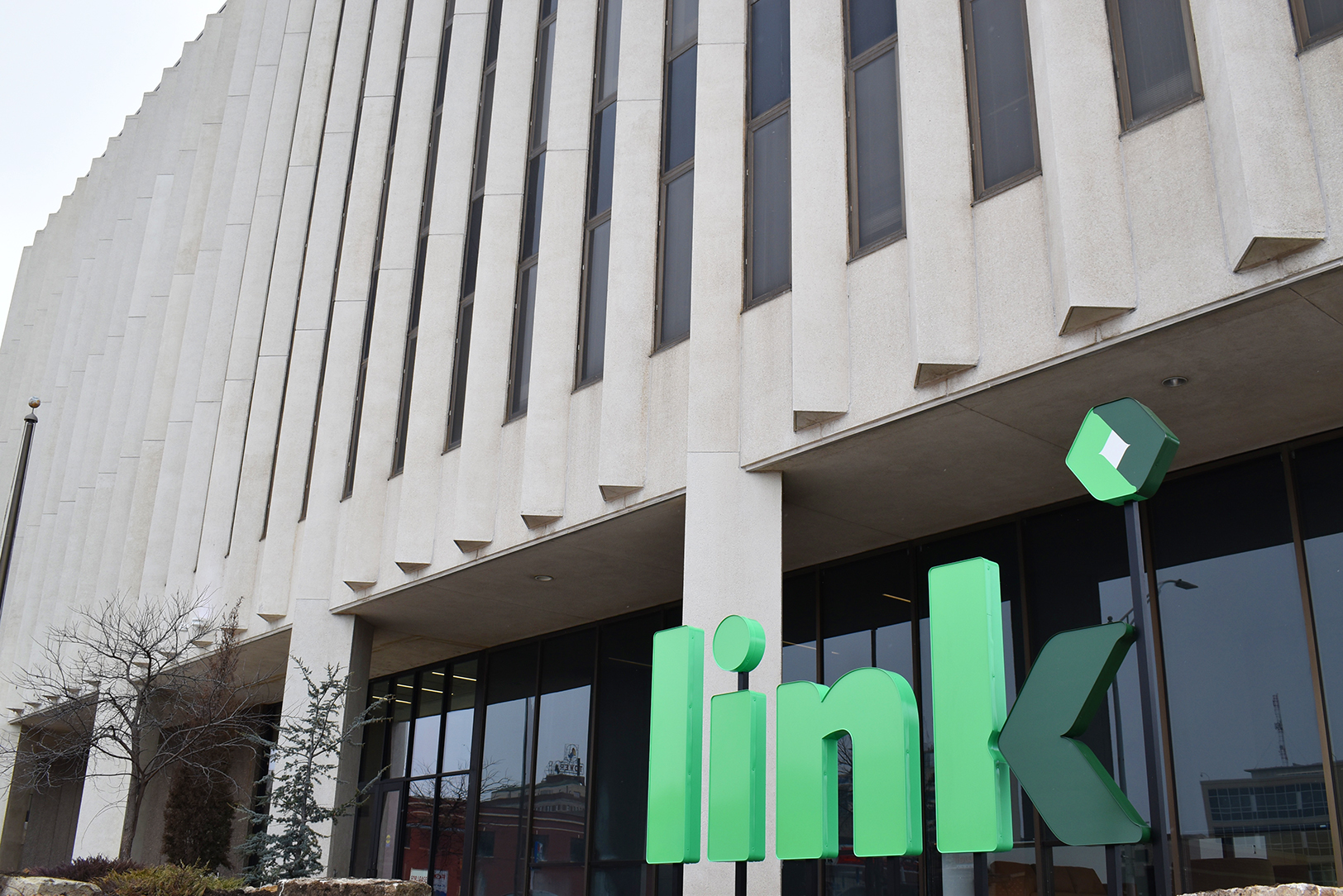 Freshly installed signage heralds the official arrival of Link Innovation Labs in downtown Topeka; photo by Tommy Felts, Startland News