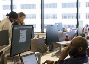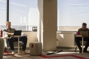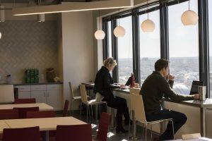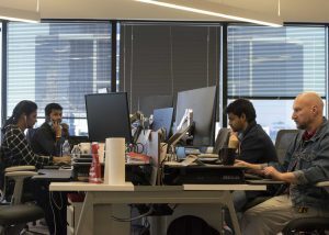 “We’re really happy with it,” he said. “As you can see, everyone is situated on the outside perimeter of the office, so everybody has nice views. There’s no individual offices, even our CEO, CMO and COO all sit right over there.”