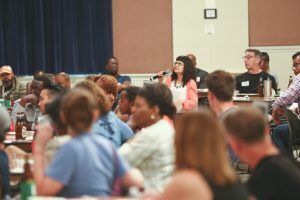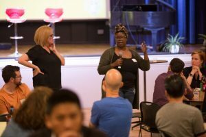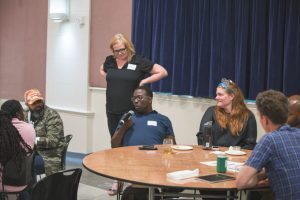 “Can we please make sure there’s at least one white person at each table?” McDonald, who facilitated the workshop, called out to the crowd.