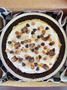 The cottage bakeshop offers a menu of pies with flavors like peanut butter cream, boozy pecan, and apple; seasonal favorites such as a snack food pie for Kansas City Chiefs gameday, gooseberry, strawberry, pumpkin, and peach pies; and an array of hand pies, mini pies, pop tarts, scones, savory pies and quiche.