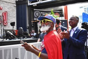 Kansas City Mayor Quinton Lucas reacts as news his city will host the 2026 World Cup is announced Thursday at Power & Light