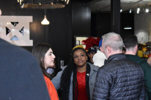 Darcy Howe, KCRise Fund, and Charles Clow, Whipz, talk during Startland News' Kansas City Startups to Watch in 2023 reception at MADE MOBB