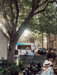 Clutton is used to positioning her Wild Way camper at parks — during weekends this spring you can find her at Brookside Park along the Trolley Trail; her Crossroads warehouse, where she parks the camper inside and hosts pop ups during the winter; and events, like weddings, corporate events, office parties, and farmers markets.