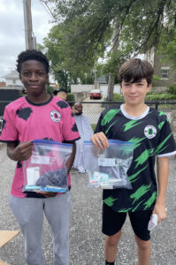 Abdullahi and Emilio teamed up for an event at Independence Boulevard Christian Church — where they have classes through Ryogoku Soccer Academy — calling the effort a success, and drawing about 50 people. Emilio’s parents grilled hot dogs; they had a prize wheel to spin that included things like hats, T-shirts, sunglasses, water bottles, flashlights, and gift cards; and Jimmy Nguyen — Vu Nguyen’s cousin — with TB Hair Design in Columbus Park and Amy Harper with Jack’s Studio KC in the Westside provided free haircuts.