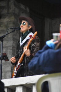 Lino Ward and Camila Segura-Rivera of The New Vanguard perform in the Valentine neighborhood during PorchFestKC; photo by Tommy Felts, Startland News