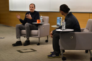 Gary White, co-founder of Water.org, speaks to a group of student entrepreneurs at the UMKC Bloch School during the university’s First Tuesdays entrepreneurship speaker series; photo by Taylor Wilmore, Startland News