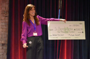 Melissa Vincent, Pipeline, holds the winning check for Dr. Brandy Archie, AskSAMIE, at Pipeline’s 2024 Daytime Showcase; photo by Taylor Wilmore, Startland News
