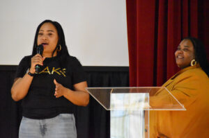 Cori Smith, founder of BLK + BRWN bookstore, pitches her business alongside Karis Harrington, G.I.F.T.; photo by Taylor Wilmore, Startland News