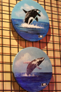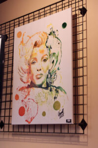 Paintings by David Alston feature the faces of The Three Stooges, Albert Einstein, and Elvis; photo by Nikki Overfelt Chifalu, Startland News