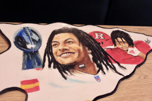 Alston is constantly challenging himself, he noted, recently starting to do his paintings on epoxy and resin instead of the traditional canvas. His first experiment with the new materials featured Patrick Mahomes on a giant arrowhead.