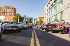 The event — a festive block party in the Crossroads with more than 800 attendees — featured 30-plus luxury and classic cars, including some from Kelce’s own collection and a 1969 Chevelle that the Ignition Lab students converted into an electric car.