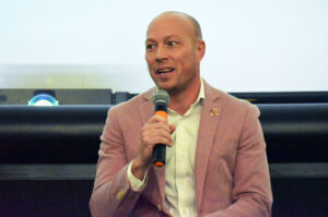 Francisco Murguia, owner of Cafe Ollama, speaks during a GEWKC panel conversation about the business impact of the coming World Cup in 2026; photo by Taylor Wilmore, Startland News