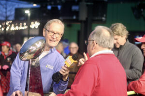 Alldredge enjoyed meeting community members — many seemingly new to Chicken N Pickle — and people who drove to the business just for the broadcast, she said. The crowd also included several former Chiefs players and cheerleaders, as well as a group of young students who didn’t have school Thursday.