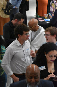 Clark Rooseveltte, founder of CLVR World, networks at the Small Business Superstars reception; photo by Tommy Felts, Startland News
