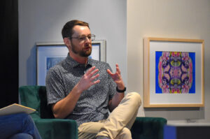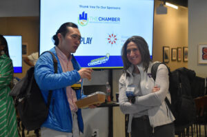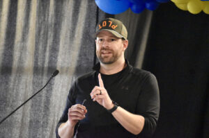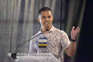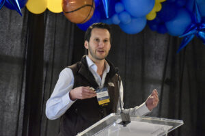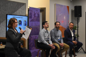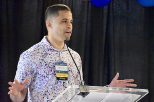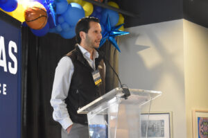 Andrew Márquez, VU Scholarships, pitches his startup during the Gamechangers & Champions bracket bash pitch competition in Wichita; photo by Nikki Overfelt Chifalu, Startland News