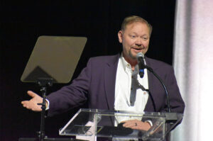 Serial founder Donald Hawkins speaks from the stage in the Grand Hall at Union Station during the 2025 Pipeline Innovators Gala; photo by Nikki Overfelt Chifalu, Startland News