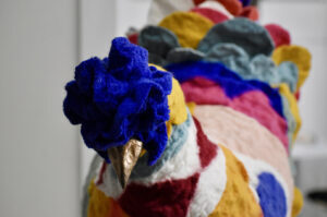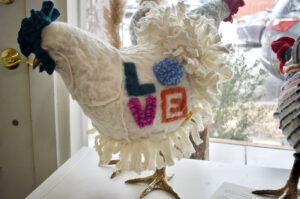 “It’s just fun to take that fiber that we create and put it onto a chicken and include that personality in the form of the artwork,” Linville said.