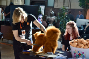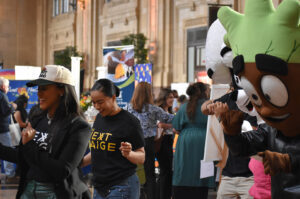 A booth by Next Paige Talent Agency amps up the crowd in Union Station during the KC Chamber’s showcase; photo by Nikki Overfelt Chifalu, Startland News