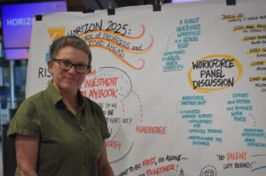 Qiana Thomason, president and CEO of the Health Forward Foundation, center, discusses workforce strengths within the region during the KC Rising Horizon event; photo by Taylor Wilmore, Startland News