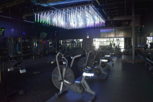 The gym blends technology with group training, using a proprietary app that integrates with wearables like Apple Watches to track heart rate zones and display workout data in real-time on in-gym screens.