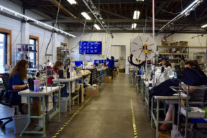 Inside Sandlot Goods production facility on Southwest Boulevard in Kansas City; photo by Nikki Overfelt Chifalu, Startland News