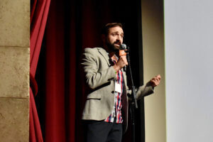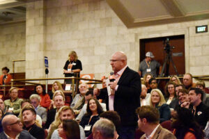 Ian Foster pitches his company, SiteScan, at the 2025 Pure Pitch Rally; photo by Nikki Overfelt Chifalu, Startland News