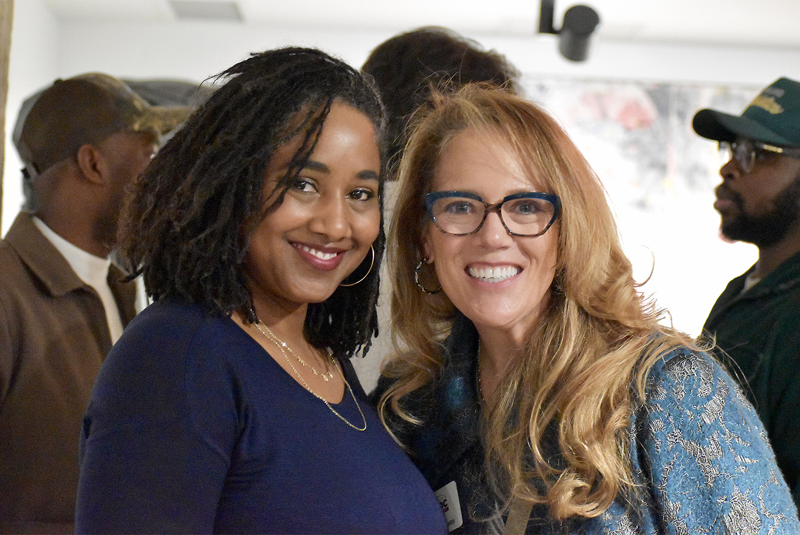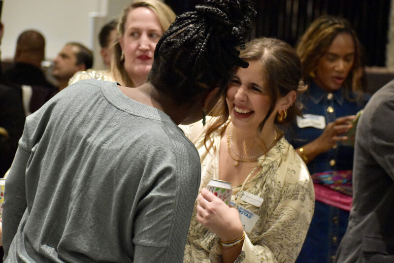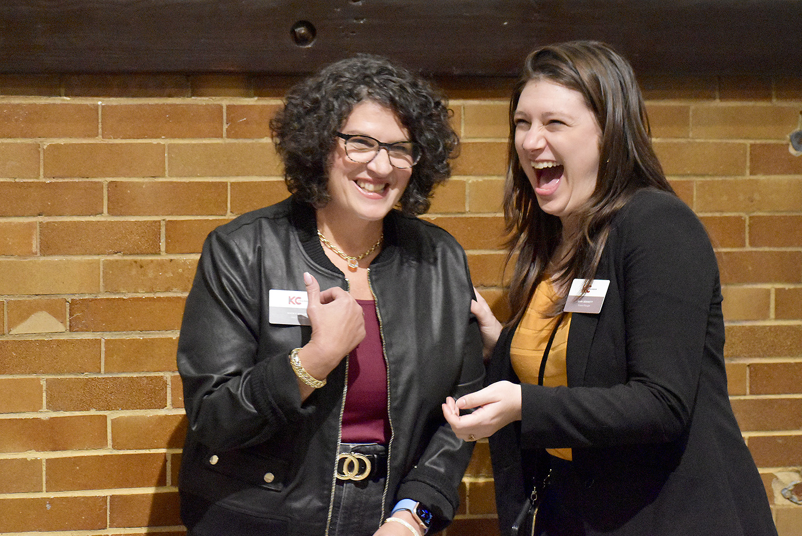 The KC Chamber’s Vicky Kulikov and Dani Bennett share a laugh at the Zhou B. Art Center during the Small Business Superstar Soiree; photo by Nikki Overfelt Chifalu, Startland News