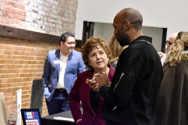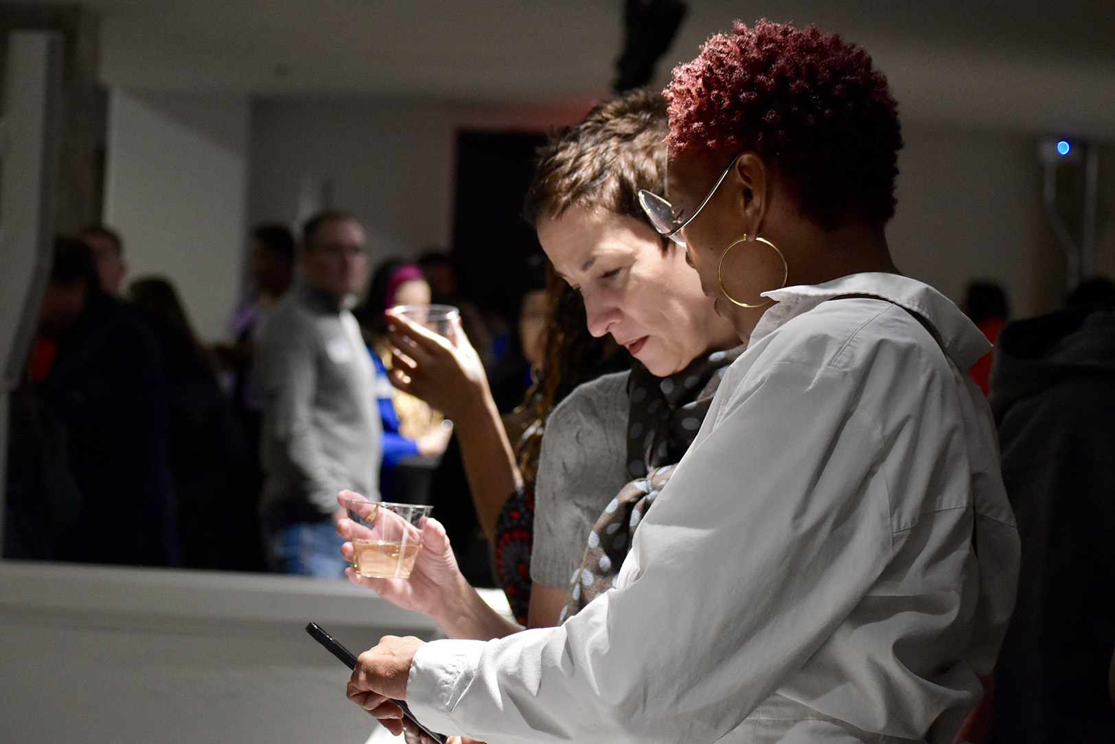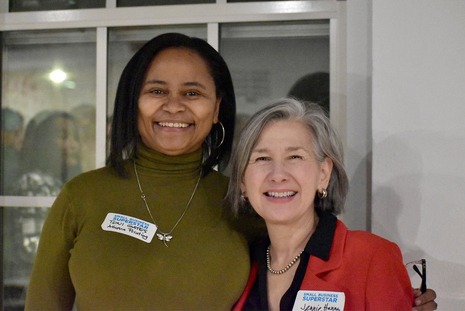 Athena Printing co-founders Toni Gates and Jennie Hanna during the “Small Business Superstar Soiree” hosted by the Greater Kansas City Chamber of Commerce at the Zhou B. Art Center; photo by Nikki Overfelt Chifalu, Startland News