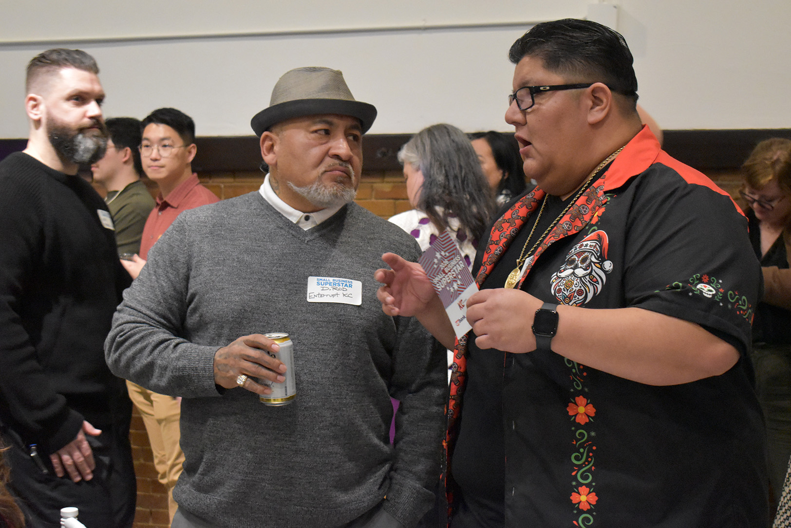Daniel “D.Rod” Rodriguez and Jose “JL” Leon Jr., co-hosts of the Enterrupt KC podcast, at the Small Biz Superstars Soiree; photo by Taylor Wilmore, Startland News