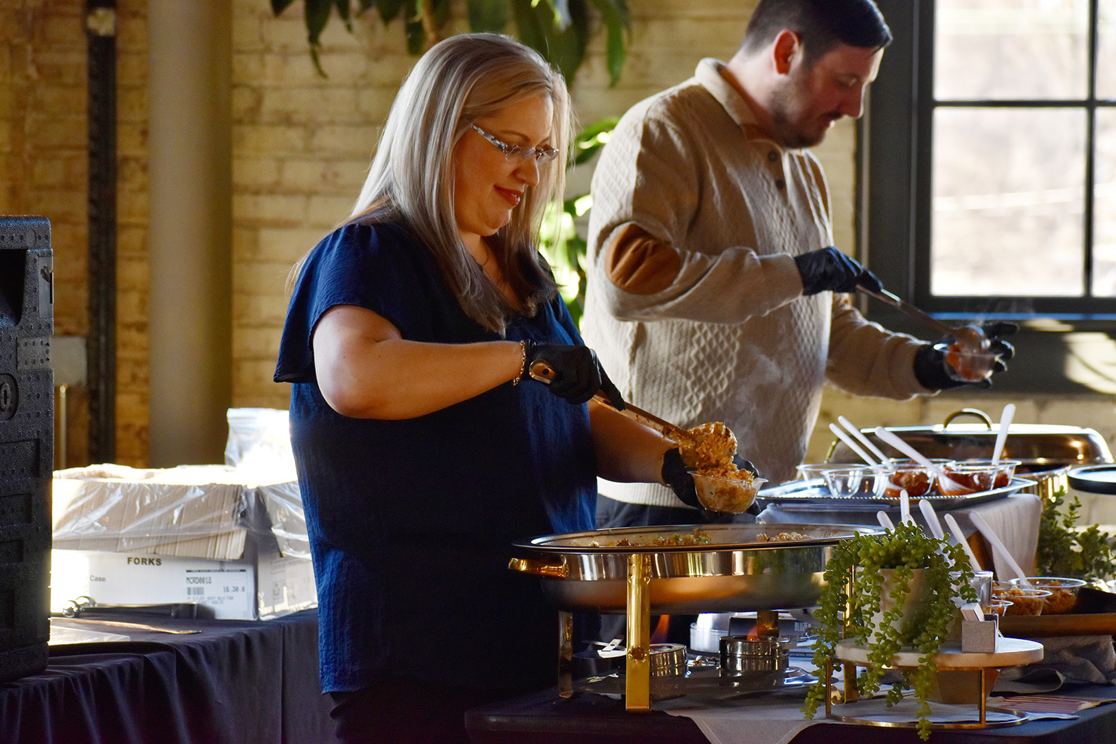 AnnaMarie Foster, general manager at Union on The Hill, plates samples during a preview event for the 10-day Kansas City Restaurant Week at J. Rieger & Co.; photo by Taylor Wilmore, Startland News