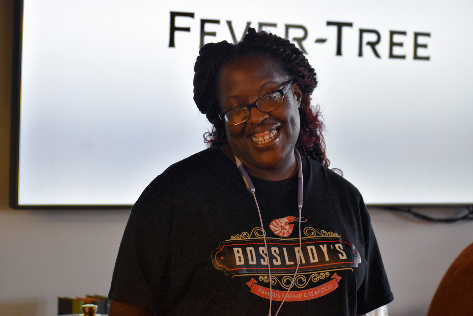 Nashaunda Law, founder of Bosslady’s Famous Shrimp, during a preview event for the 10-day Kansas City Restaurant Week at J. Rieger & Co.; photo by Nikki Overfelt Chifalu, Startland News