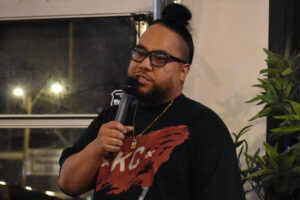 Mark Launiu, co-founder of MADE MOBB, opens a panel conversation on entrepreneurship during Blueprint Weekend at the streetwear brand’s Southwest Boulevard headquarters; photo by Taylor Wilmore, Startland News