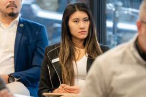 Elysia Chao, founder of Overland Park-based Worktern, listens during the first in-person meeting of members in the 2026 NXTSTAGE Customer Traction Cohort; photo courtesy of NXTUS