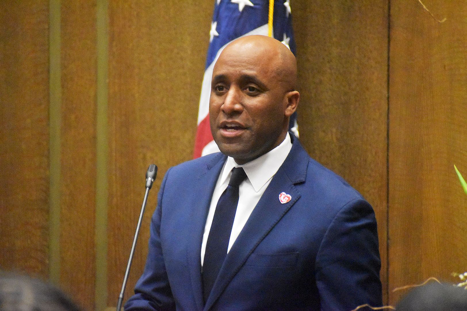 Mayor Quinton Lucas delivers his State of the City address in council chambers at City Hall; photo by Nikki Overfelt Chifalu, Startland News