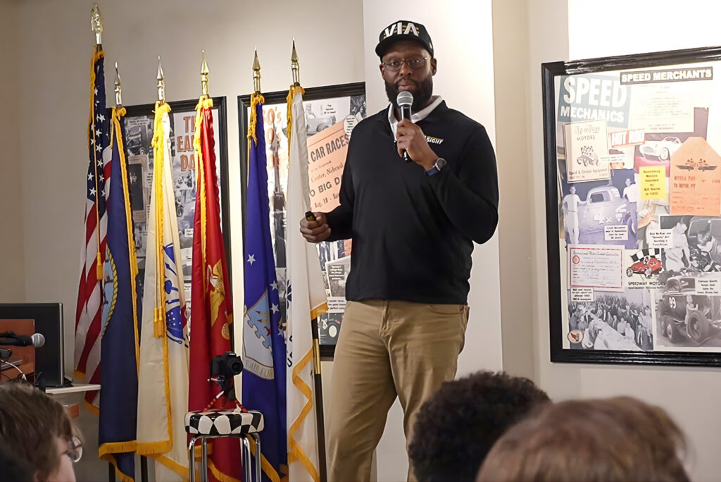 Zikomo Fields, co-founder of ViaSight, pitches his startup during a Feb. 12 NMotion accelerator cohort; photo by Spencer Goracke