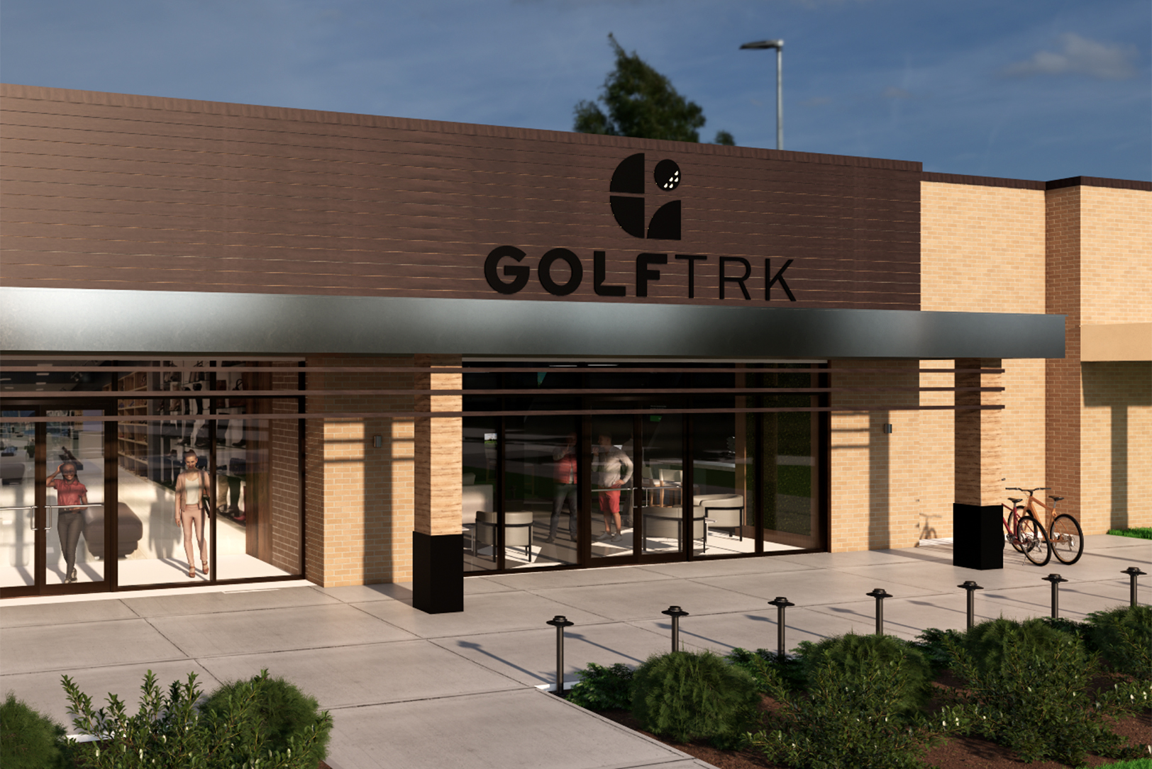 An exterior rendering of the new GolfTRK flagship and headquarters for Albatross Golf; rendering courtesy of GolfTRK