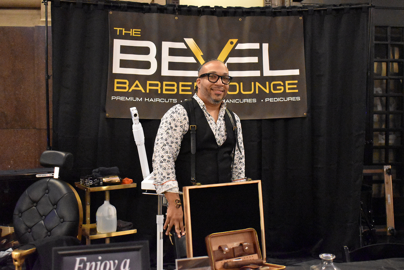 Casie Murff smiles while demonstrating services from The BeVel Barber Lounge during the KC Chamber’s Small Business Candidates Showcase at Union Station; photo by Nikki Overfelt Chifalu, Startland News