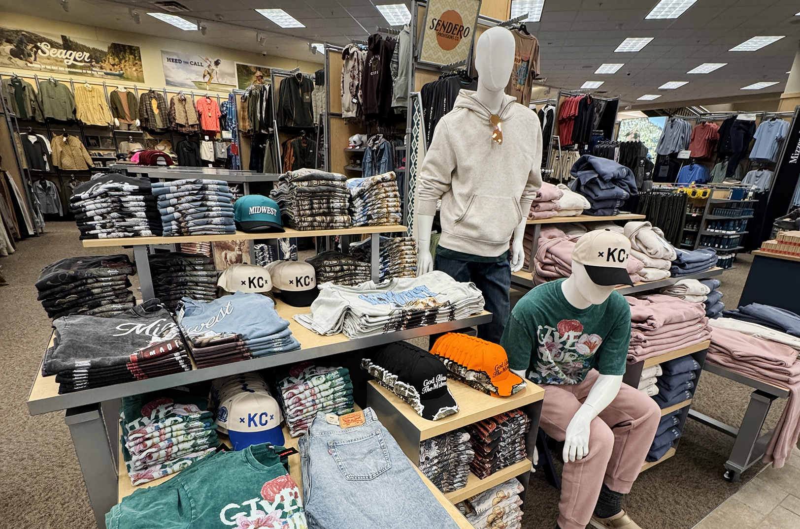 The creative team looked beyond the streets, to nature, he said, exploring designs with Midwest animals — horses, geese, trout — to flip the vibe of what a customer might find in an outdoors store anywhere across the region.