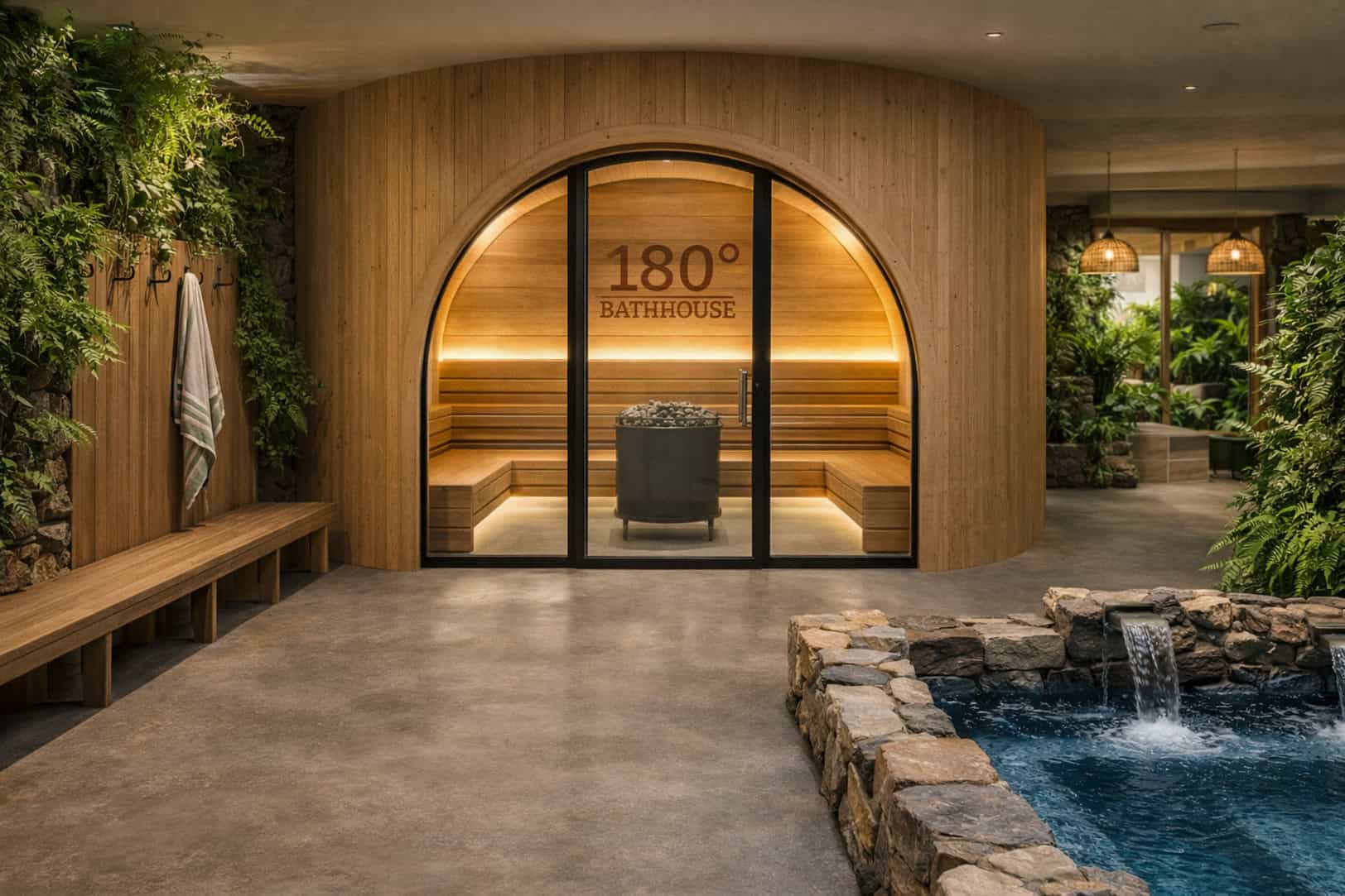 Rather than replicating the one- or two-person infrared setups common across the metro, 180° Bathhouse is designed around shared experiences, Steppe explained. The space will center on a large-format sauna that can accommodate roughly 35 to 40 people at once, paired with cold plunges and open, communal areas.