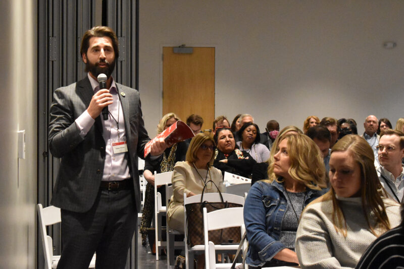 Ruben Alonso, CEO of AltCap, asks a question during a fintech panel conversation at C3KC in 2022; photo by Channa Steinmetz, Startland News
