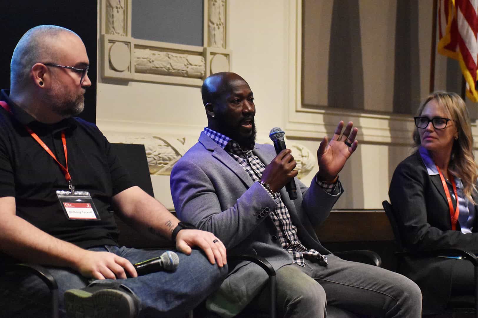 John Duker, services client director at ServiceNow, speaks during a c3KC panel on AI at Work; photo by Taylor Wilmore, Startland News