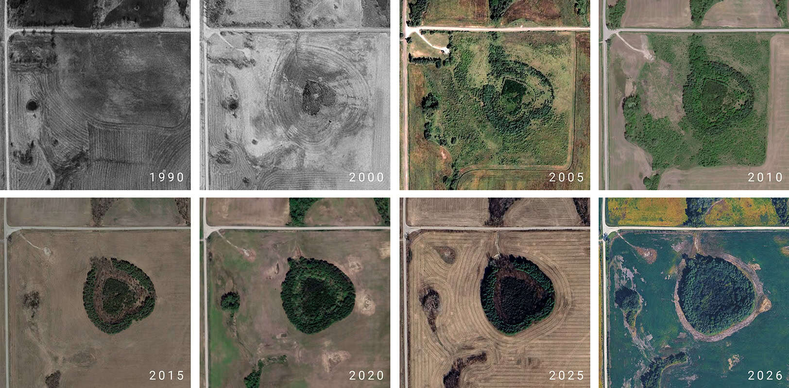 Aerial photos over time show the growth of Heart Forest through the years; photos courtesy of Maria Landoni, Surlandscape