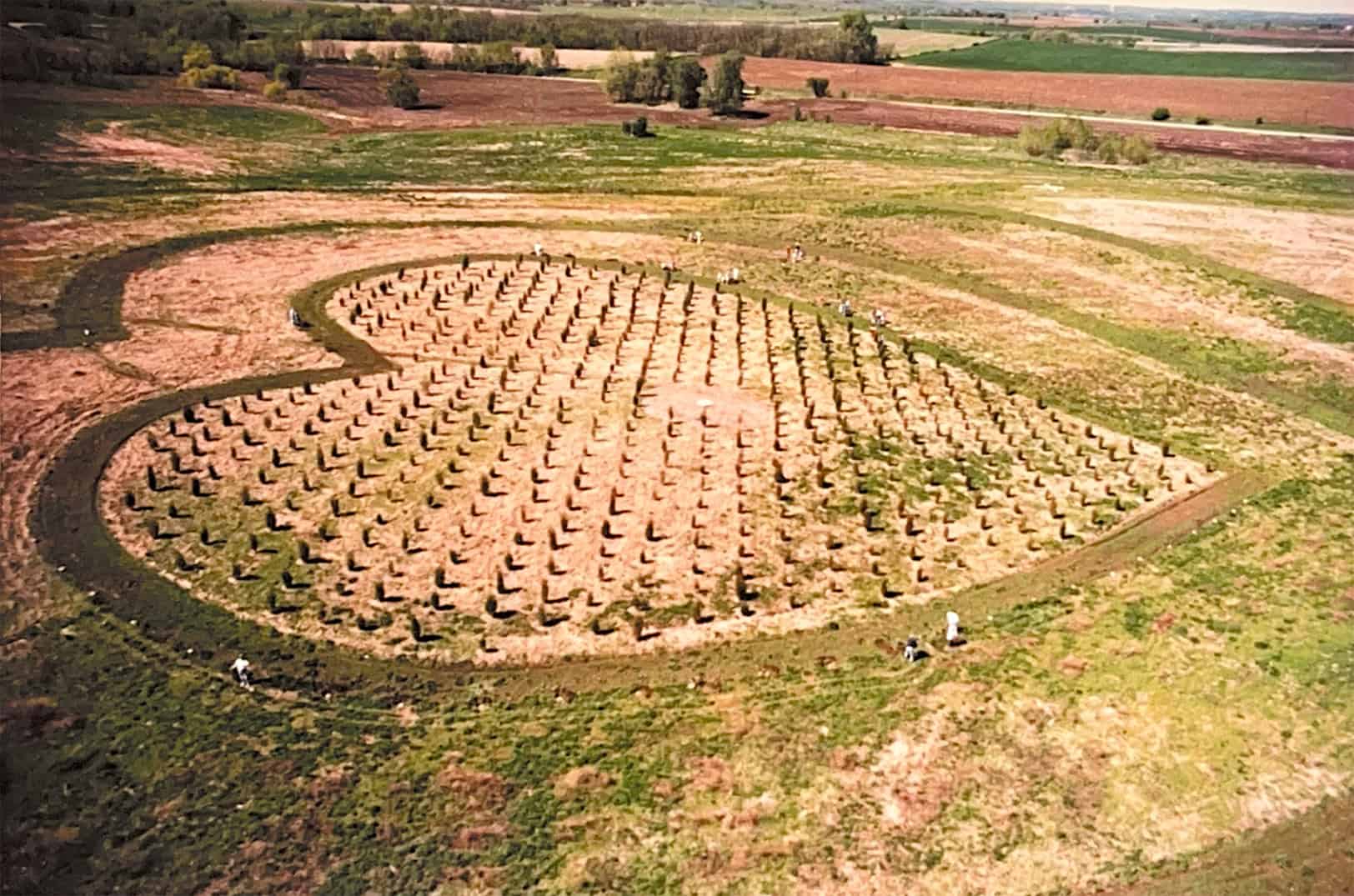 “I worked, actually, for a couple years on what Muller had suggested,” Berkebile explained. “And I discovered a number of things. One of which is — had I resolved the most complicated land deal in the history of America to do that — you would never see it on a commercial flight. You could see it from outer space on a clear day, but from a plane, you would see a row of trees curving over the horizon. So we eventually scaled it down.”