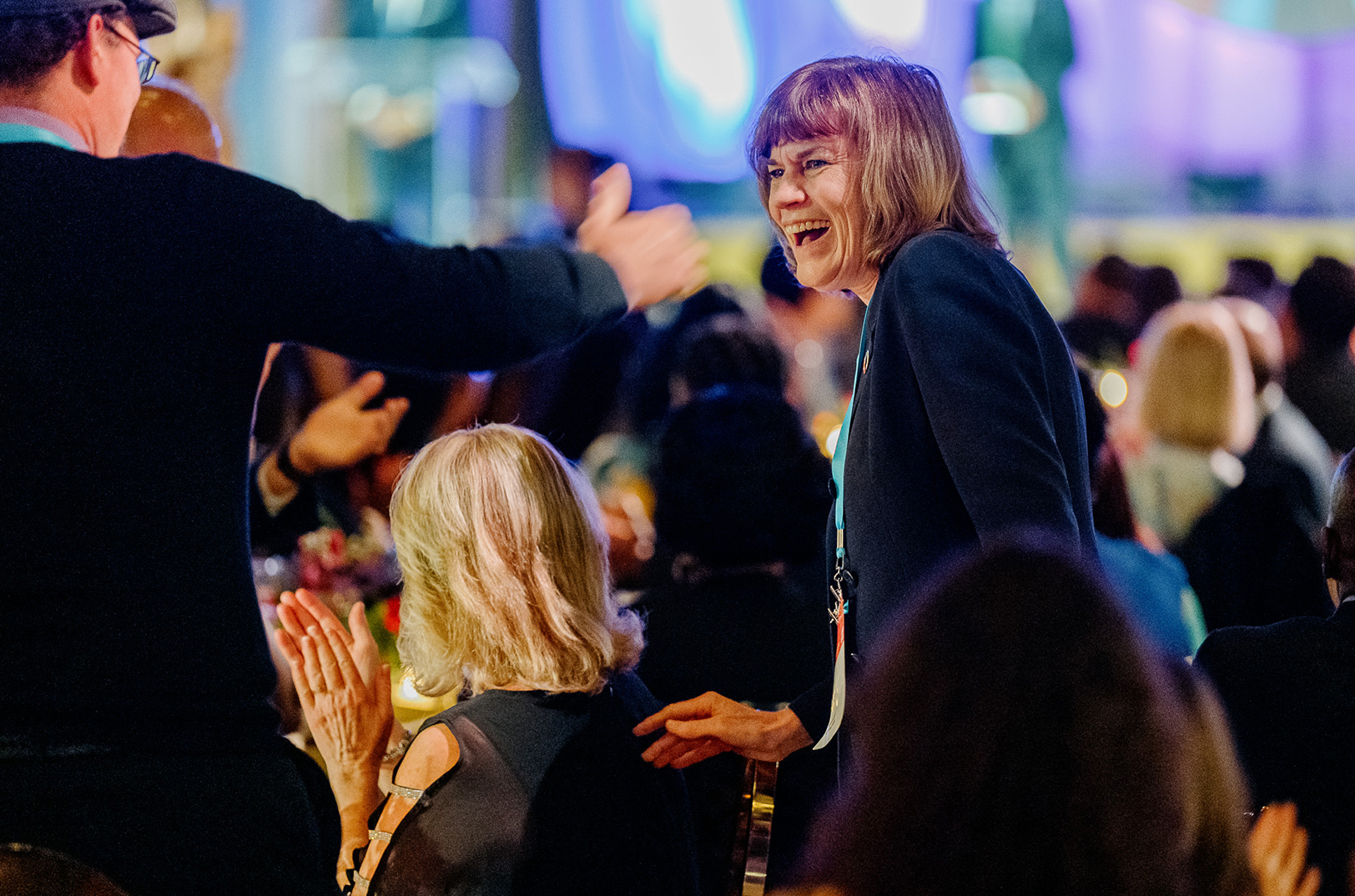 Maria Meyers, founder of SourceLink, is announced as winner of the 2025 Ecosystem Champion Award at the Global Entrepreneurship Conference in Indianapolis; photo by Sean Molin