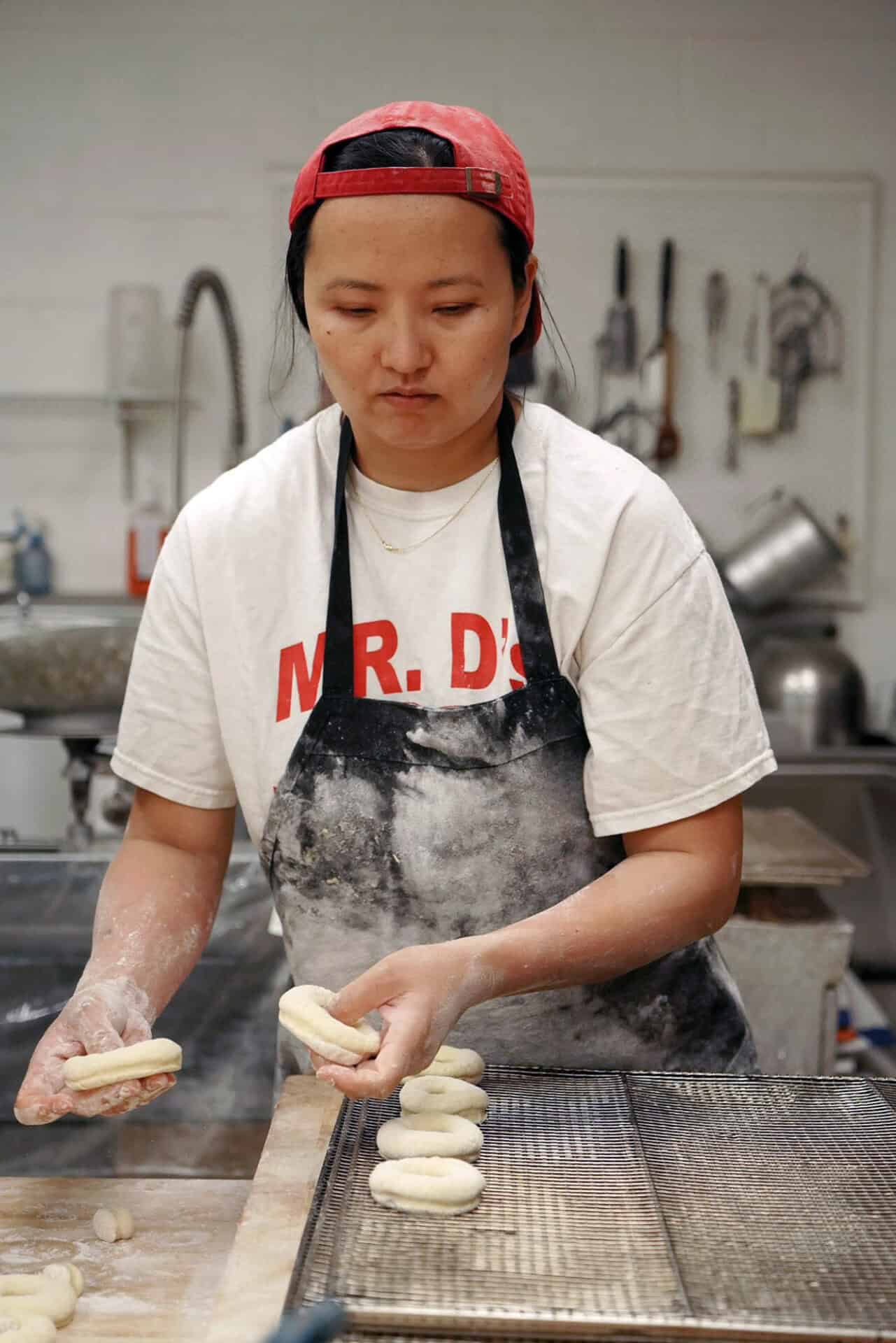 Boggie Otgonbayar preps donuts in the Mr D’s Donuts central kitchen at the shop in Shawnee; courtesy photo